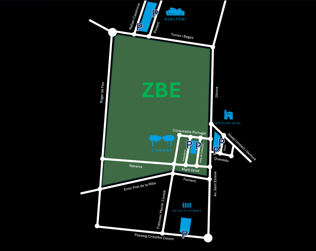 • Parkings fuera de la ZBE: Los parkings PBlaus ofrecen opciones estratégicas fuera de la zona restringida.